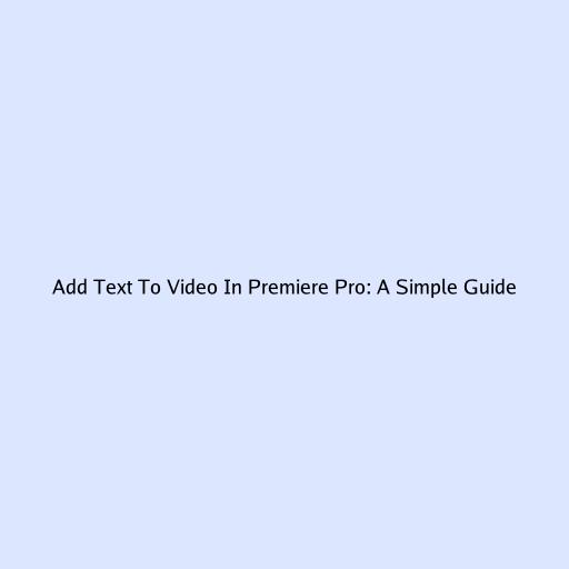Add Text To Video In Premiere Pro: A Simple Guide