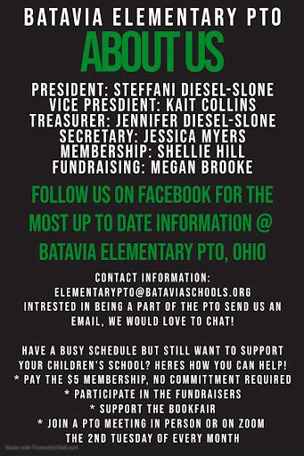 Getting involved with the Batavia PTO is easier than you might think, guys! Membership is typically open to all parents, guardians, and staff members of Batavia schools. You don’t necessarily need to pay dues to be a part of the conversation, although some PTOs might have optional membership fees that contribute to their fundraising goals. The most important thing is your willingness to participate. There are countless ways to get involved, catering to all schedules and skill sets. You can attend the general PTO meetings to stay informed and share your ideas. If you have more time, consider joining a committee – these groups focus on specific areas like fundraising, event planning, communications, or volunteer coordination. Even an hour or two a month can make a huge difference! Volunteering for specific events is another fantastic way to contribute. Whether it’s helping out at the book fair, setting up for a school carnival, or assisting with teacher appreciation week, your help is invaluable. Don’t underestimate the power of spreading the word – share PTO news and events with other parents you know. Even if you can’t commit regular time, your moral support and participation in events like school fundraisers are highly appreciated. The Batavia PTO thrives on the energy and dedication of its members. It’s a fantastic opportunity to connect with other parents, get a better understanding of what goes on at school, and directly contribute to making your child’s educational experience even better. Every little bit helps, and your involvement truly matters.