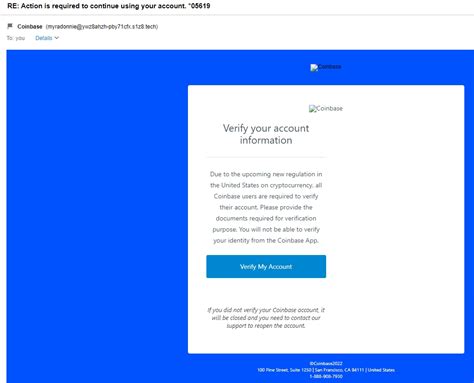 • Sense of Urgency: Scammers often try to create a sense of urgency to pressure you into acting quickly without thinking critically. They might claim that your account has been compromised, that you need to verify your information immediately, or that you’ll miss out on a special promotion if you don’t act fast. Don’t fall for these tactics. Take your time to carefully examine the email and verify its authenticity before taking any action. If you’re unsure, contact Coinbase support directly through the official website or app to confirm whether the email is legitimate.