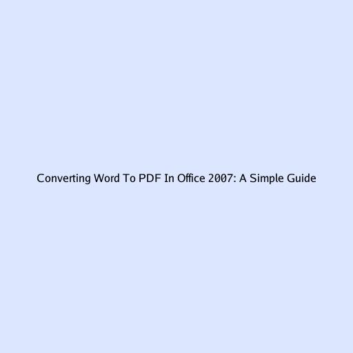 Converting Word to PDF in Office 2007: A Simple Guide