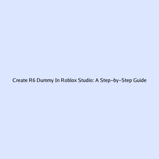 Create R6 Dummy In Roblox Studio: A Step-by-Step Guide