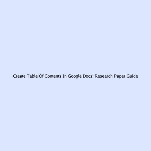 Create Table Of Contents In Google Docs: Research Paper Guide