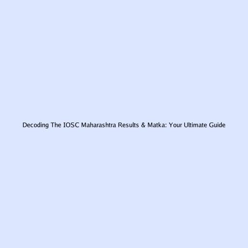 Decoding the IOSC Maharashtra Results & Matka: Your Ultimate Guide
