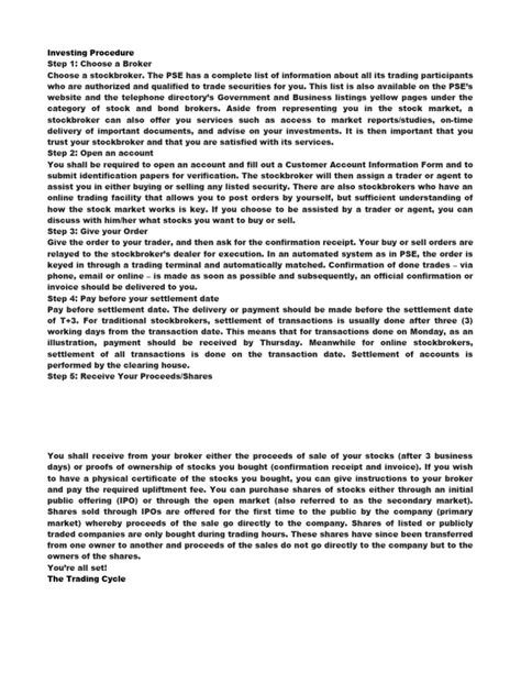 Once you’ve chosen your stocks, it’s time to place your order. Log into your brokerage account and find the trading platform. Enter the stock symbol, the number of shares you want to buy, and the price you’re willing to pay. There are different types of orders, such as market orders (which execute immediately at the best available price) and limit orders (which allow you to specify the maximum price you’re willing to pay). Choose the type of order that suits your strategy. Ensure the accuracy of your order details. Double-check the stock symbol, number of shares, and price before submitting. Reviewing your order before execution is very important. After you submit your order, your broker will execute it on the PSE. Monitor your orders until they are executed. After your order is executed, you’ll receive a confirmation from your broker. Ensure your order details match your investment goals. Place your order with the correct details. Place your order on the trading platform, and choose the order type that suits your strategy. There are different types of orders, each with its own advantages. Understand the different order types. After placing an order, monitor your trade. You’ll get confirmation from the broker.