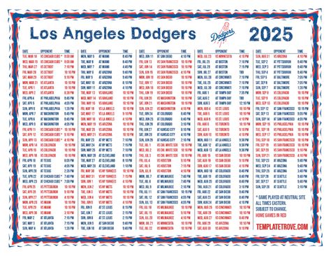 As we eagerly anticipate the unveiling of the Dodgers’ 2025 home schedule, it’s a good idea to consider some key aspects that usually influence the schedule’s structure. The 2025 schedule is currently unreleased, but we can make some educated guesses based on the usual MLB patterns. Typically, the schedule is designed to balance divisional rivals, interleague play, and the geographical distribution of teams. This means we’ll likely see a healthy mix of games against the NL West rivals (the Giants, Padres, Diamondbacks, and Rockies), exciting matchups against teams from the other divisions in the National League, and some thrilling interleague clashes with teams from the American League. The MLB always aims to create a compelling and competitive schedule, ensuring a variety of opponents throughout the season. The exact dates and opponents are yet to be announced, but keep an eye on the official MLB and Dodgers websites, as well as major sports outlets. They will be the first to drop the schedule details. Remember, the release date could vary, but the anticipation is half the fun, right? We’ll be on the lookout!