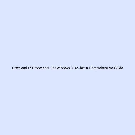 Download i7 Processors for Windows 7 32-bit: A Comprehensive Guide
