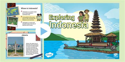 Finally, let’s journey to Indonesia , a Southeast Asian nation made up of thousands of volcanic islands. Indonesia is known for its diverse culture, stunning landscapes, and rich history. From the bustling streets of Jakarta to the serene beaches of Bali, Indonesia offers something for everyone.