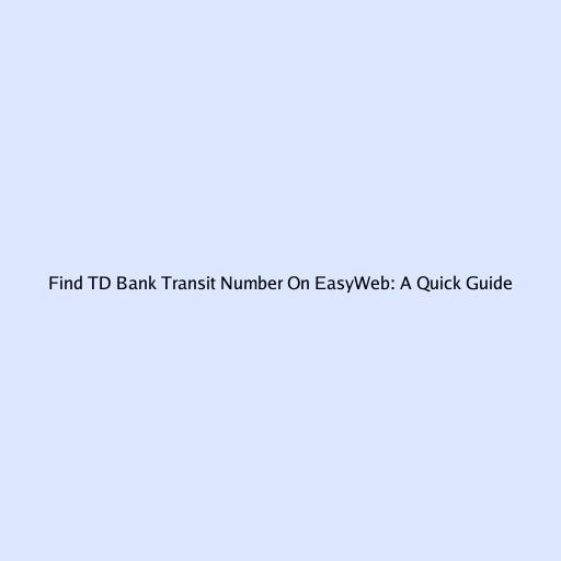 Find TD Bank Transit Number on EasyWeb: A Quick Guide