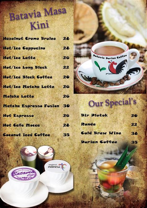 The menu at Cafe Batavia is diverse and caters to a wide range of tastes. You’ll find a mix of Indonesian and Western dishes, as well as a variety of coffee, tea, and other beverages. Some popular menu items include nasi goreng (fried rice), gado-gado (Indonesian salad), and various pasta dishes. Of course, the coffee is a must-try, made from high-quality beans and expertly brewed to perfection. Whether you’re in the mood for a hearty meal or a light snack, you’ll find something to satisfy your cravings.