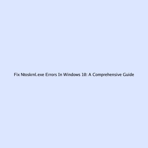 Fix Ntoskrnl.exe Errors In Windows 10: A Comprehensive Guide