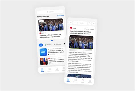 2. Category Navigation: Make it easy for users to find the news they’re interested in by providing clear and intuitive category navigation. This could be a tab bar at the bottom of the screen, a sidebar menu, or a dropdown menu. Common categories include: World , Politics , Business , Technology , Sports , and Entertainment .