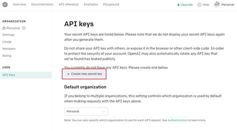 - Generate Your API Key: Within the API section, you should see an option to “Create new secret key” or something similar. Click on that.