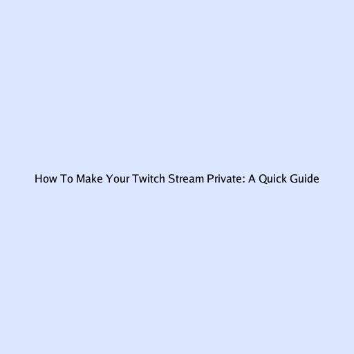 How To Make Your Twitch Stream Private: A Quick Guide