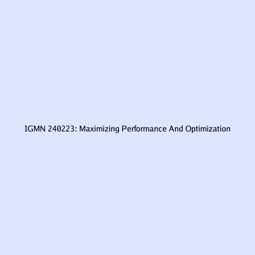 IGMN 240223: Maximizing Performance And Optimization