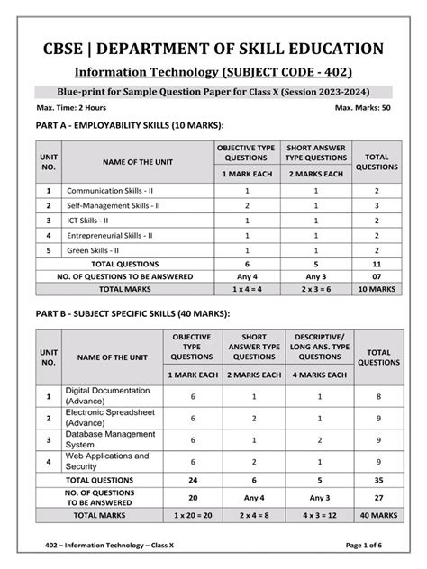 IIT 402 Class 10 Syllabus & Sample Paper 2024-25