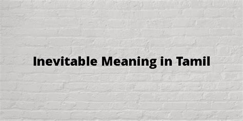 The Inevitable Meaning in Tamil: What You Absolutely Need to Know