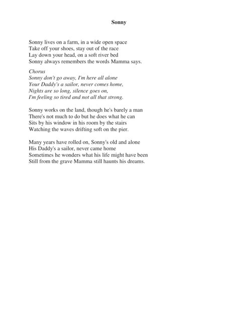 In the bridge , Sonny often shifts the perspective or introduces a new element to the narrative. This section can serve multiple purposes: it might offer a moment of introspection, a desperate plea for understanding, or even a fleeting glimpse of hope. Sometimes, the bridge acts as a turning point, where the character begins to grapple with the root cause of their insecurity. Sonny might question the source of this need for external validation, or perhaps express a longing for genuine self-acceptance. The language here can become more philosophical or questioning. Instead of just describing the feeling, he might be asking why he feels this way. Are his insecurities a result of past experiences? Societal pressures? This deeper dive into the ‘why’ adds layers of complexity to the song. Alternatively, the bridge might intensify the feeling of despair, painting a picture of being trapped in this cycle with no apparent escape. He might be acknowledging the destructive nature of his pursuit of insecure glory, realizing that it’s a hollow victory. This could be where he expresses a desire to break free, but feels powerless to do so. The imagery in the bridge can be particularly potent. Think of a moment of quiet contemplation amidst the storm, or a sudden realization that dawns in the darkness. It’s a space for vulnerability and raw honesty. Sonny might use metaphors of being lost, or searching for a guiding light. This part of the song is crucial for providing context and emotional depth. It’s where the listener might feel the most empathy for Sonny, as he lays bare his innermost struggles. Whether it offers a hint of redemption or plunges further into the depths of his insecurity, the bridge is where the narrative often takes its most significant turn, leaving the listener pondering the ultimate outcome of this battle for self-worth. It’s the emotional climax before the final chorus, where the stakes feel highest and the vulnerability is at its peak, forcing us to confront the difficult truths about our own quests for glory and validation.