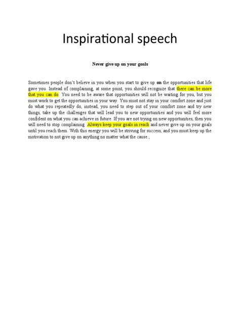 Alright, everyone, let’s chat about the power of a positive mindset. Having a positive attitude can have a huge impact on your overall well-being. This is a crucial topic for any motivational speech because it can change your perspective on challenges. Start by defining what a positive mindset is. Talk about the importance of optimism, resilience, and gratitude. Explain how a positive mindset affects every aspect of life, from relationships to career success. This section can discuss the influence of your thoughts on your feelings and behavior. Share practical strategies, such as practicing gratitude, which can help shift your perspective. Discuss mindfulness and meditation. These are practices that can help you become more aware of your thoughts and emotions, allowing you to develop a more positive and balanced outlook. Encourage your audience to challenge negative thoughts. The goal here is to help them reframe the negative thoughts into more positive ones. This section may also include the importance of self-compassion. The key to staying positive is to learn to be kind to yourself. Remind your audience that setbacks are normal and that it’s okay to make mistakes. Encourage your audience to surround themselves with positive people. Emphasize the importance of having a support system. Talk about the benefits of a strong support system for promoting positive thinking.