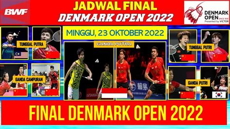 Guys, buat kalian para pecinta bulu tangkis, pasti udah gak sabar kan nungguin siapa aja yang bakal berlaga di final Denmark Open 2022 ? Turnamen bergengsi ini selalu menyajikan pertandingan yang seru dan penuh drama. Nah, buat kalian yang mau tau jadwal lengkapnya, yuk simak terus artikel ini sampai habis!