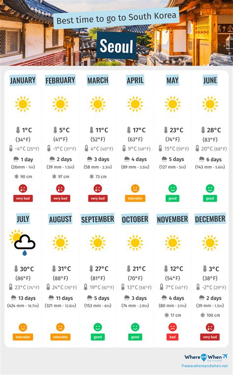 October in Korea is brimming with fantastic activities, thanks to the gorgeous weather and the vibrant fall colors . Whether you’re an outdoorsy type, a culture vulture, or a foodie, there’s something for everyone. Hiking in the national parks is an absolute must . As we’ve already touched upon, the foliage is spectacular. Seoraksan National Park, easily accessible from Seoul, is a prime spot for breathtaking autumn views. Bukhansan National Park, situated right within Seoul, offers challenging hikes with rewarding panoramic vistas of the city and surrounding mountains painted in fall colors. Even if you’re not up for a strenuous climb, many parks offer easier trails and scenic drives. Exploring historical sites is also a pleasure in October. The crisp air makes wandering through ancient palaces like Gyeongbokgung and Changdeokgung in Seoul, or visiting the historic villages of Bukchon Hanok Village and Namsan Hanok Village, much more enjoyable. You can spend hours exploring these cultural gems without feeling the oppressive heat of summer. The clear skies also provide excellent photo opportunities. For a unique experience, consider a day trip to the DMZ (Demilitarized Zone) , the border between North and South Korea. While not weather-dependent, October’s clear skies often provide better visibility for the surrounding areas. Food festivals and cultural events often pop up during this season. Keep an eye out for local harvest festivals or food-related celebrations that showcase Korea’s rich culinary heritage. Trying seasonal delicacies like freshly harvested fruits and vegetables is a real treat. Visiting Jeonju Hanok Village is another fantastic idea. This beautifully preserved traditional village offers a glimpse into Korea’s past, and the autumn scenery around it is stunning. You can even rent a hanbok (traditional Korean clothing) and take memorable photos amidst the colorful leaves. For those heading south, Busan offers a slightly warmer coastal vibe. You can enjoy beaches (though swimming might be too cold for most), explore vibrant markets like Jagalchi Fish Market, and visit cultural sites like Gamcheon Culture Village, all under pleasant autumn skies. Don’t forget the vibrant street food scene in cities like Seoul and Busan. October’s cooler evenings are perfect for enjoying warm, delicious treats from street vendors – think tteokbokki, odeng, and hotteok. Basically, guys, October is the month to soak in the beauty of Korea, both natural and cultural, with comfortable temperatures making every experience that much better. It’s the perfect blend of comfortable exploration and seasonal festivities.