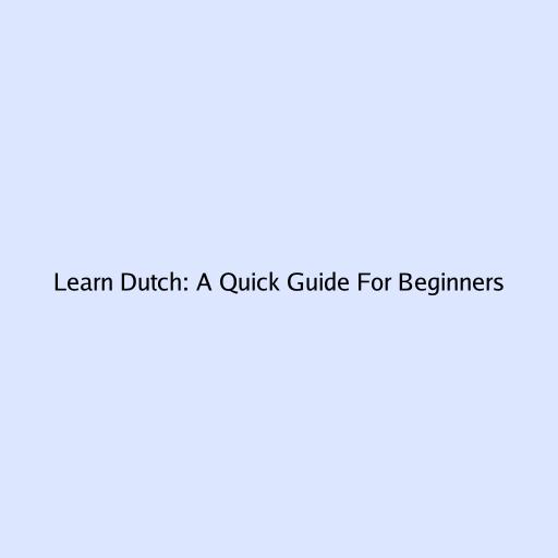 Learn Dutch: A Quick Guide for Beginners