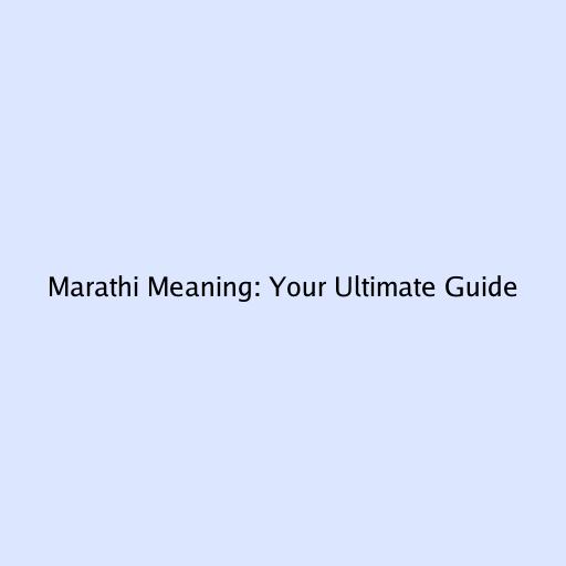 Marathi Meaning: Your Ultimate Guide