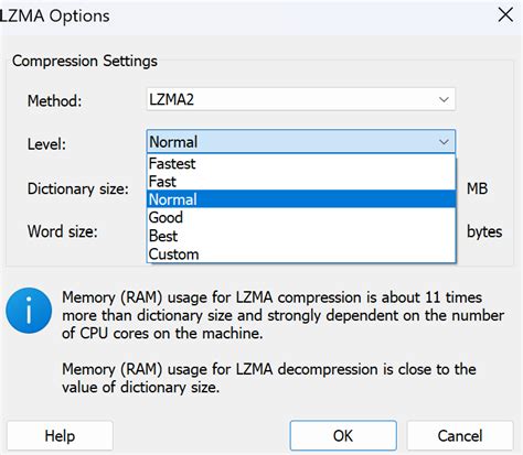• Compression level: For .zip files, “ Normal ” or “ Fast ” is usually sufficient. “ Ultra ” will provide slightly better compression but take longer. For most uses, normal is fine.