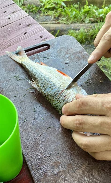 First things first, let’s get our fish prepped. You want to start with a fresh, cold fish . If it’s not already scaled, now’s the time. Place the fish on your stable cutting board. Hold the tail firmly with one hand. With your scaler or the back of your knife, scrape away from the tail towards the head , applying gentle but firm pressure. Work your way up both sides of the fish, and don’t forget the area near the fins and the belly. You’ll notice little shiny scales coming off – that’s what you want! Rinse the fish under cold running water to remove any remaining scales and pat it dry thoroughly with paper towels. A dry fish is easier to handle and cut.