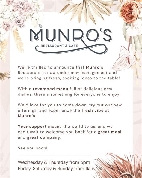 Keep an eye out for the chef’s recommendations. The chef’s recommendations are a testament to their passion for creating dishes that are both delicious and innovative. They are constantly experimenting with new flavor combinations and techniques. These dishes are often a blend of creativity and skill. They’re usually only available for a limited time, so it’s a chance to experience something truly unique. Follow Munro on social media. Social media is a great way to stay up-to-date on the latest specials, chef’s recommendations, and any other exciting news. They often post photos of their dishes. They also share behind-the-scenes glimpses of the kitchen. You can also sign up for the Munro Restaurant newsletter. The newsletter is a great way to receive exclusive information about the menu. They also offer special promotions and events. By staying in the know, you’ll be one of the first to discover the latest culinary creations and ensure you don’t miss out on any of the delicious offerings at Munro Restaurant. It’s all about being in the loop and enjoying the best of what Munro has to offer!