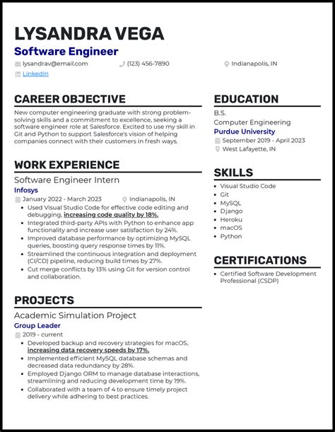 When listing your education, don’t just stop at your degree. Include relevant coursework, especially if it aligns with the types of roles you’re targeting. Did you take courses in data structures, algorithms, or specific programming languages? Highlight them! Academic projects are gold for new grads. Describe the project, your role, the technologies you used, and, most importantly, the results. Did you improve performance, reduce bugs, or implement a new feature? Quantify your achievements whenever possible.