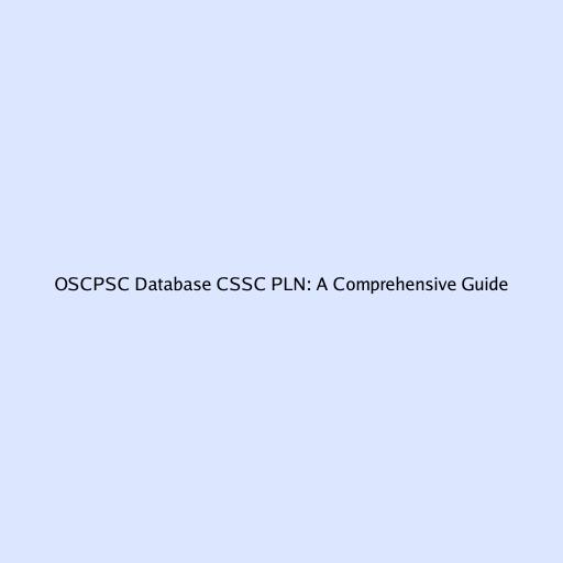OSCPSC Database CSSC PLN: A Comprehensive Guide