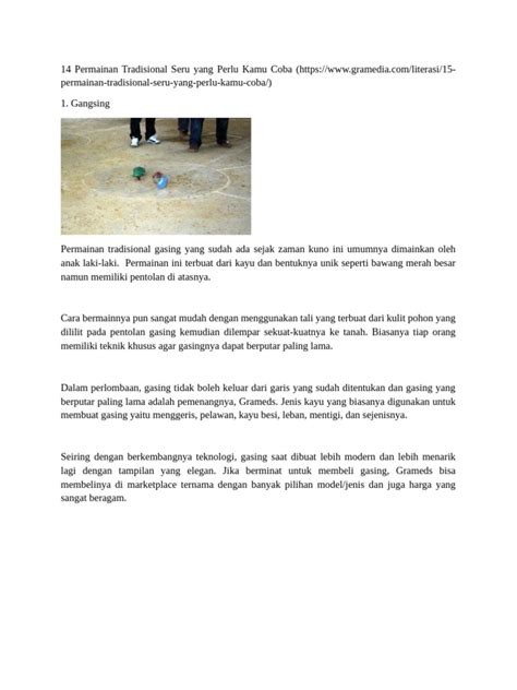 Selanjutnya, ada gasing bambu ! Ini dia nih permainan yang bikin tangan pegal tapi seru banget. Permainan tradisional yang menggunakan bambu ini dimainkan dengan cara diputar menggunakan tali yang dililitkan di badan gasing. Semakin kencang putarannya, semakin lama gasing itu berputar. Nah, yang bikin seru adalah pas adu gasing. Siapa yang gasinya paling lama berputar atau bisa menjatuhkan gasing lawan, dialah pemenangnya. Gasing bambu ini nggak cuma asyik dimainkan sendiri, tapi juga seru kalau diadain lomba sama teman-teman. Butuh ketangkasan dan keseimbangan buat muter gasingnya biar stabil dan nggak gampang jatuh. Kadang, kita juga perlu strategi buat ngarahin gasing kita biar nabrak gasing lawan. Permainan anak bambu ini melatih motorik halus, konsentrasi, dan kemampuan memprediksi gerakan. Suara desisan gasing yang berputar di tanah itu punya ciri khas tersendiri yang bikin kangen. Main gasing bambu juga bisa jadi ajang pamer skill, lho. Siapa yang paling jago muter, siapa yang paling jago bikin gasingnya bergoyang indah. Nggak jarang, kita bakal lihat gasing-gasing bambu yang diukir dengan motif unik, menunjukkan kreasi para pembuatnya. Ini bukan sekadar mainan, tapi juga sebuah karya seni sederhana yang menghibur. Jadi, kalau kamu lihat anak-anak main gasing bambu, jangan cuma nonton, coba deh tanya gimana cara mainnya, siapa tahu kamu jadi tertarik buat ikutan main!