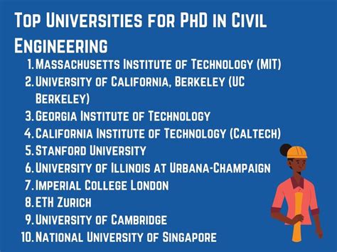 • Top Universities: Some of the top universities for civil engineering in the Netherlands include Delft University of Technology (TU Delft), Eindhoven University of Technology (TU/e), and the University of Twente. These universities have a long tradition of excellence in engineering education and research, offering a wide range of PhD programs.