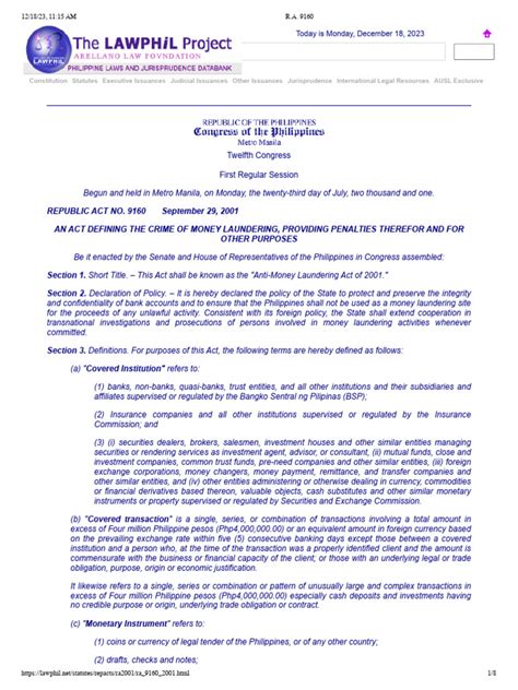 Hey guys! Let’s dive into Republic Act 9160 , which is more commonly known as the Anti-Money Laundering Act of 2001 . This is a super important piece of legislation in the Philippines, designed to combat the dirty business of money laundering. You know, that process where criminals try to make illegally obtained money look like it came from a legitimate source. It’s a big deal because money laundering fuels all sorts of nefarious activities like terrorism, drug trafficking, and corruption. So, understanding this law is key to grasping how our country fights back against these threats. It’s not just some dusty old law; it’s actively used to protect our financial system and, by extension, all of us.