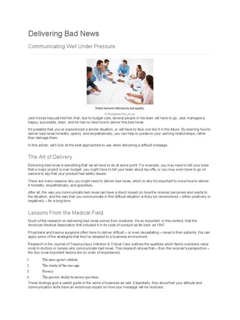 Alright, let’s switch gears a bit and talk about the tough gig of delivering bad news . This is a skill that many shy away from, but honestly, guys, it’s a crucial part of being a decent human being, whether in your personal life or your career. When you have to be the bearer of unwelcome tidings, your approach can literally make or break how the other person copes. First off, choose your setting wisely. Find a private, comfortable space where the recipient can react without feeling exposed. Avoid delivering bad news in a public setting or over text if at all possible – face-to-face or a private call is usually best. Deliver bad news with tact by being direct but compassionate. Don’t beat around the bush for too long, as this can build anxiety, but also avoid being blunt and cold. Start by expressing concern or empathy, perhaps saying something like, “I have some difficult news to share, and I’m really sorry to have to tell you this.” Then, state the news clearly and concisely. After you’ve delivered the news, give the person space to process it. Be prepared for a range of reactions, from tears to anger to silence. Your role here is to listen, to offer support, and to answer any questions they might have honestly. If possible, offer solutions or next steps. For example, if it’s a work-related issue, you might discuss alternative options or resources available. If it’s personal, offering to help in practical ways can be invaluable. Remember, your goal isn’t to fix everything, but to be a supportive presence during a difficult time. Empathy and transparency are your best friends here. Try to anticipate questions and have information ready if possible. Being prepared shows that you respect the person and the seriousness of the situation. It’s about minimizing the hurt while ensuring the truth is communicated. This requires emotional intelligence and a genuine care for the well-being of the person you’re speaking with. It’s a delicate balance, but mastering it builds trust and strengthens relationships, even when delivering tough messages.
