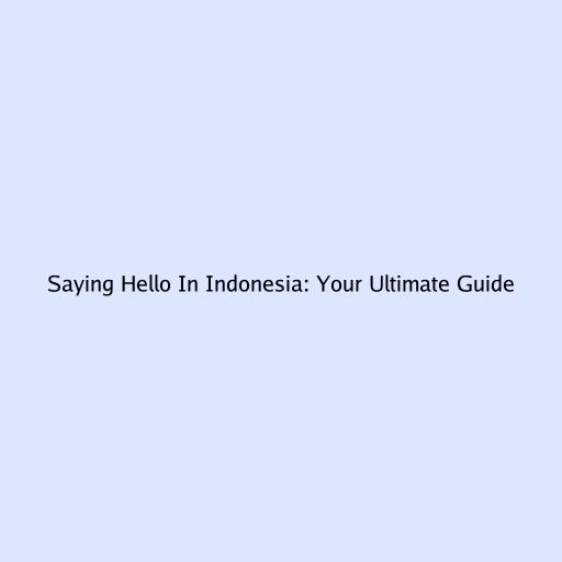 Saying Hello in Indonesia: Your Ultimate Guide