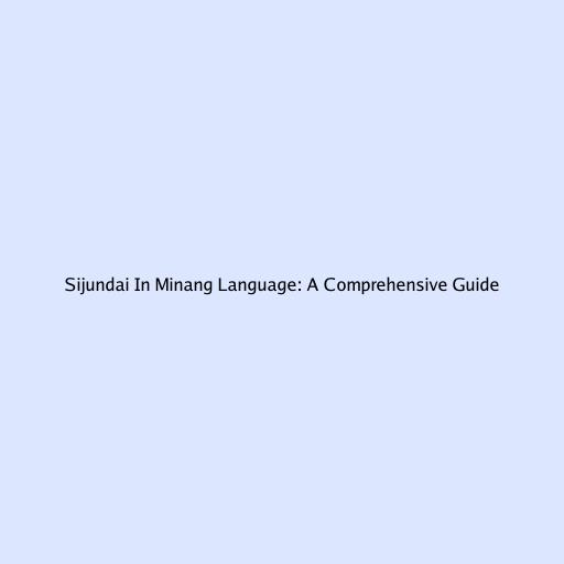 Sijundai In Minang Language: A Comprehensive Guide