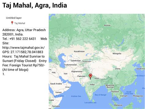 Taj Mahal: Location In India