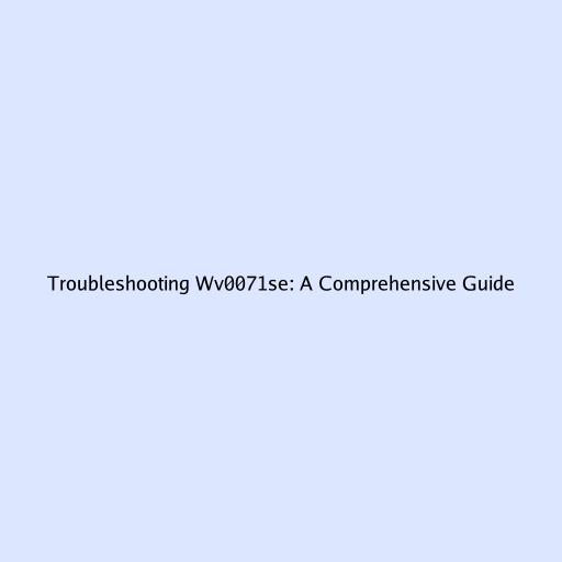 Troubleshooting Wv0071se: A Comprehensive Guide
