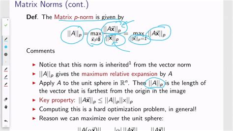 It’s worth noting that the L2 norm isn’t the only game in town when it comes to measuring matrix size. There are other popular matrix norms, like the Frobenius norm and the L1 norm (or maximum absolute column sum norm), and the L-infinity norm (or maximum absolute row sum norm). Each has its own definition and use case. The Frobenius norm , for example, is calculated by taking the square root of the sum of the squares of all the elements in the matrix. It’s simpler to compute than the L2 norm but doesn’t directly tell you about the maximum stretching factor. The L1 norm sums the absolute values of the elements in each column and takes the maximum of these sums. The L-infinity norm does the same for rows. While these norms are useful for different purposes – the Frobenius norm often appears in least-squares problems and the L1/L-infinity norms in analyzing bounds for linear systems – the L2 norm (spectral norm) stands out because of its direct link to singular values and its interpretation as the maximum singular value. This specific property makes it the go-to norm for understanding the amplification properties of a linear transformation represented by the matrix. So, while other norms give you a sense of the matrix’s overall “mass” or “sum of influences,” the L2 norm pinpoints its maximum “power” or “amplification capability.”