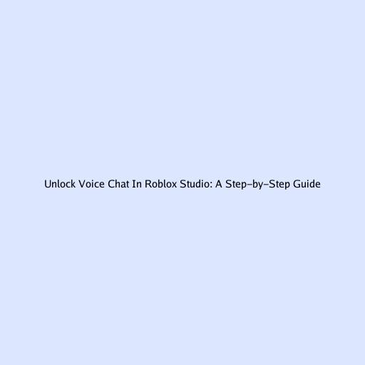 Unlock Voice Chat In Roblox Studio: A Step-by-Step Guide