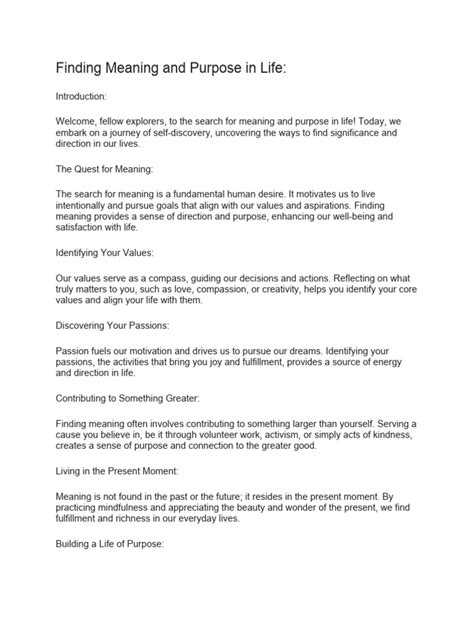 Okay, so where do we even begin this epic quest for meaning? Well, the first step is always self-reflection, my friends. This is like getting to know yourself on a deeper level. It’s about taking the time to really think about who you are, what you value, and what you want out of life. Think of it as an internal audit. What are your strengths? What are your weaknesses? What truly matters to you? One great way to start is to journal. Grab a notebook and pen (or open up a note on your phone—whatever works for you) and just start writing. Write about your daily experiences, your feelings, your thoughts, and your dreams. There’s no right or wrong way to do it; just let your thoughts flow freely. Another amazing method is meditation. Even just a few minutes of meditation each day can help you become more aware of your inner world. This awareness can be super helpful when it comes to understanding your values and goals. Don’t worry if your mind wanders at first; that’s totally normal. Just gently bring your attention back to your breath whenever you notice your thoughts drifting. Also, don’t be afraid to ask yourself the tough questions. What makes you happy? What makes you sad? What are you passionate about? What are you afraid of? The more honest you are with yourself, the better you’ll understand what gives your life meaning. This step is about figuring out your core, the foundation upon which you’ll build your meaningful life. It’s the most crucial step.