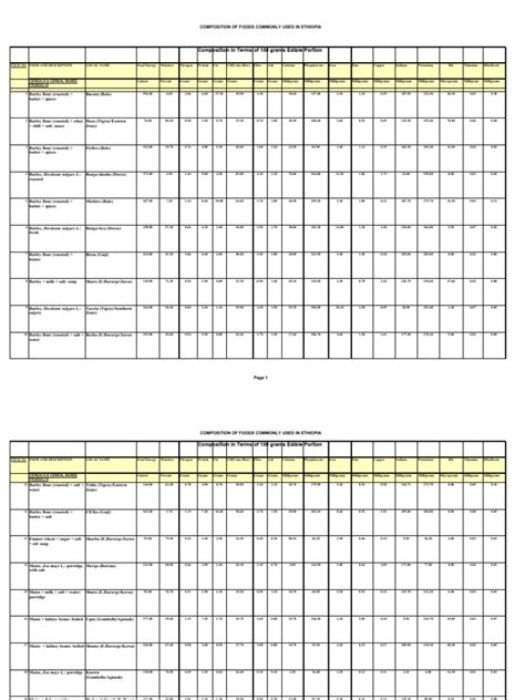 • Average Values: The data represents average values, and the actual nutritional content of a specific food item can vary depending on factors like growing conditions, processing methods, and the specific variety of the food.