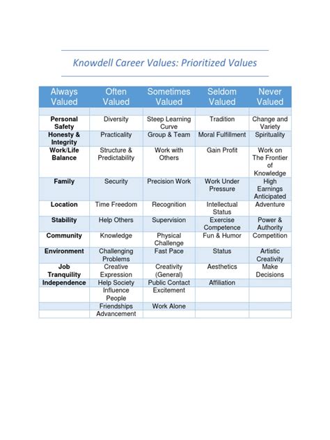 Unlocking Your Career Path: Mastering The Knowdell Values Worksheet
