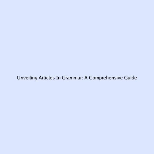 Unveiling Articles in Grammar: A Comprehensive Guide