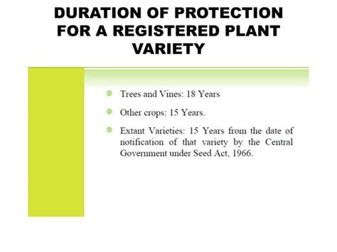 • Term of Protection: Typically 20 years for most plants, 25 years for trees and vines.